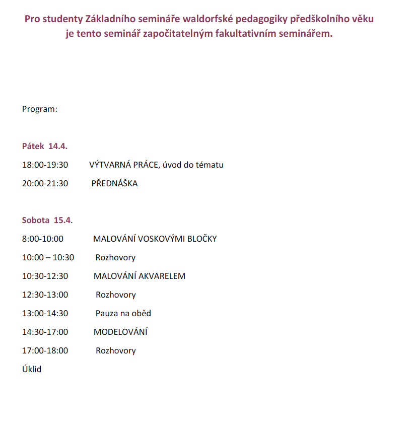 Určeno pro studenty tříletého studia, jednotlivé semináře lze absolvovat také jako host.